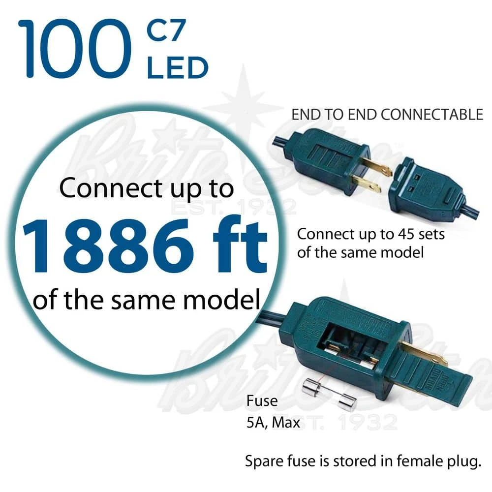 This Multi-Colored LED Light set is faceted with C7 multi-colored bulbs. On a reel with a count of 100 bulbs, these lights are easy to store and put up any time of the-year. The LED bulbs save energy compared to incandescent as well. Furthermore, it comes with a 4 in. lead wire, 5 in. spacing between bulbs and a 4 in. end connector, strung on green wire.