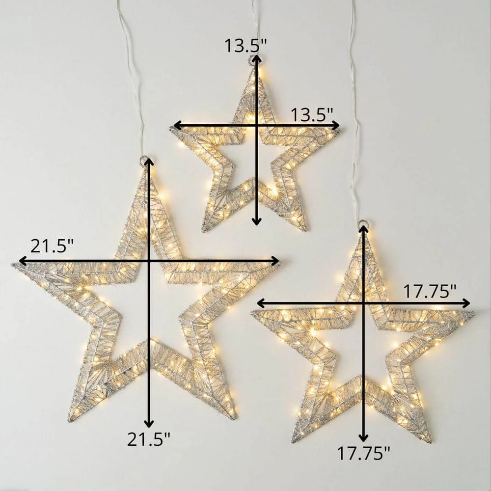 - Stylish Trio of Silver Stars: Enhance your holiday decor with the silver lighted star trio, measuring 21.5 inches tall x 2 inches wide x 21.5 inches long, crafted from high-quality metal for durability and charm.