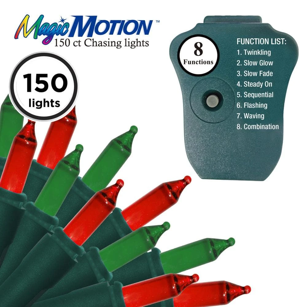 There’s no better holiday light set than the 150-Light 8 function green wire red/green chasing set. Use these beautiful and classic Christmas colors to evoke the holiday spirit all through the winter. Each strand has a total lighted length of 36 ft. , including a 24 in. lead cord and 2.75 in. spacing between bulbs.