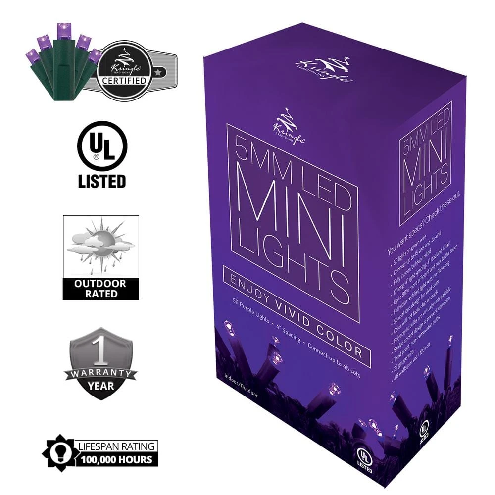 Get amazing color, brilliant light, and the durability and energy efficiency of LED, all in 1-package, with these Kringle Traditions 5 mm LED mini lights. The 5 mm’s concave lens casts light in a bright halo, creating beautiful lighting perfect for Christmas lights or string lights any time of year. The acrylic lens is virtually unbreakable, and the color is infused into the lens so the colors are true and won’t fade or chip away over time. The sealed husk design keeps moisture out and has no light clasp, reducing snagging during installation. Rated to last up to 100,000-hours. You’ll see the difference from the moment you plug them in. Make your holidays bright and colorful with Kringle Traditions 5 mm LED mini lights.