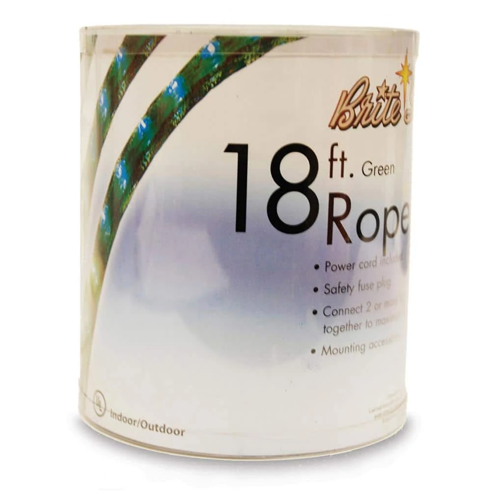 Add a modern, sleek design to your holiday decorating with this Green 18 ft. Mini Rope Light. The rope is green with clear lights inside. Measures 18 ft. long and can be used for interior design around mantles, doors and windows. Or, wrap the rope light around trees, patios or columns to create a jolly green glow outside.