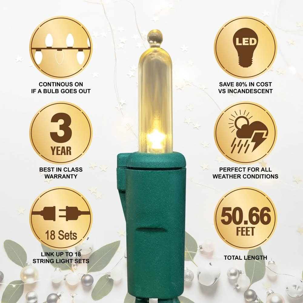 - Energy saving LED string lights: up to 80% energy savings over standard incandescent string lights, the full strand of these ENERGY STAR certified LED Christmas lights uses only 12-Watt or 0.08-Watt per bulb