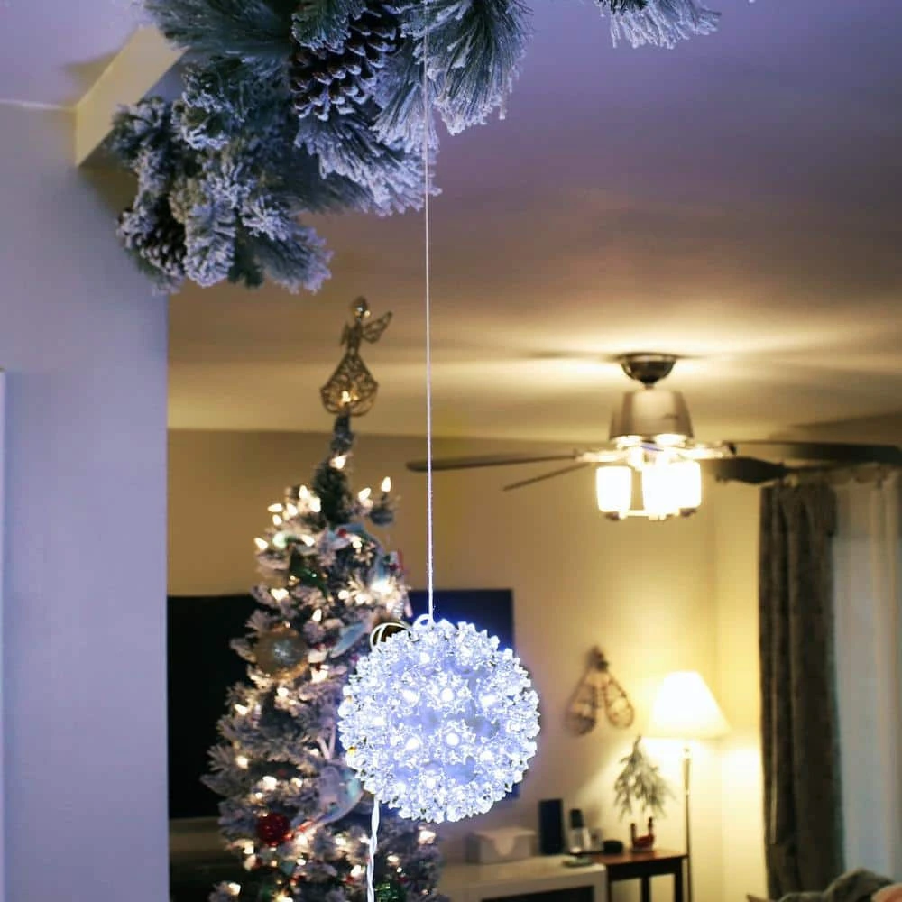 - Includes 1 hanging ornament and hook/string: hanging string: 25 in.; hook: 1.5 in. L; hang these stylish ornaments from the ceiling, walls, porch railings or tree branches to give any space a festive holiday look, with a 35,000-hour lifespan, these beautiful ornaments will glow season after season; watts: 4.8; volts: 120