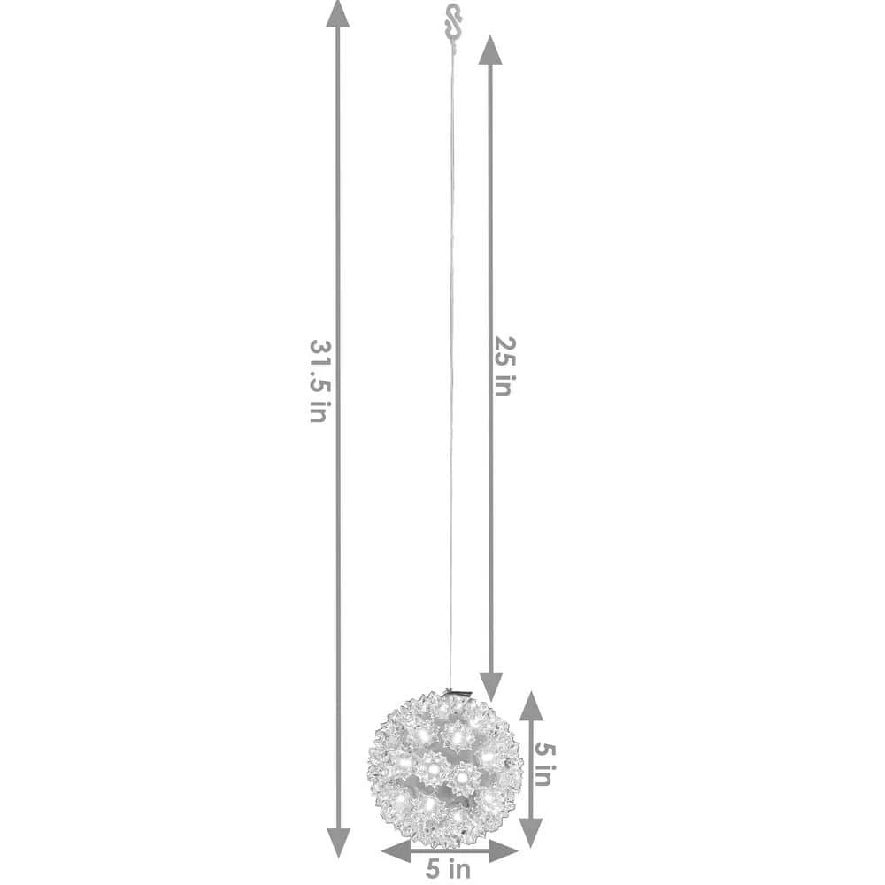 - 5 in. lighted sphere: 5 in. Dia x 5 in. tall with 141 in. power cord; each bulb is 0.19 in. thick (5 mm) and 0.25 in. L (1 in. including the socket base); weighs 0.8 lb.; 8 Lumens per bulb; color temperature: 10000K; LED count: 50