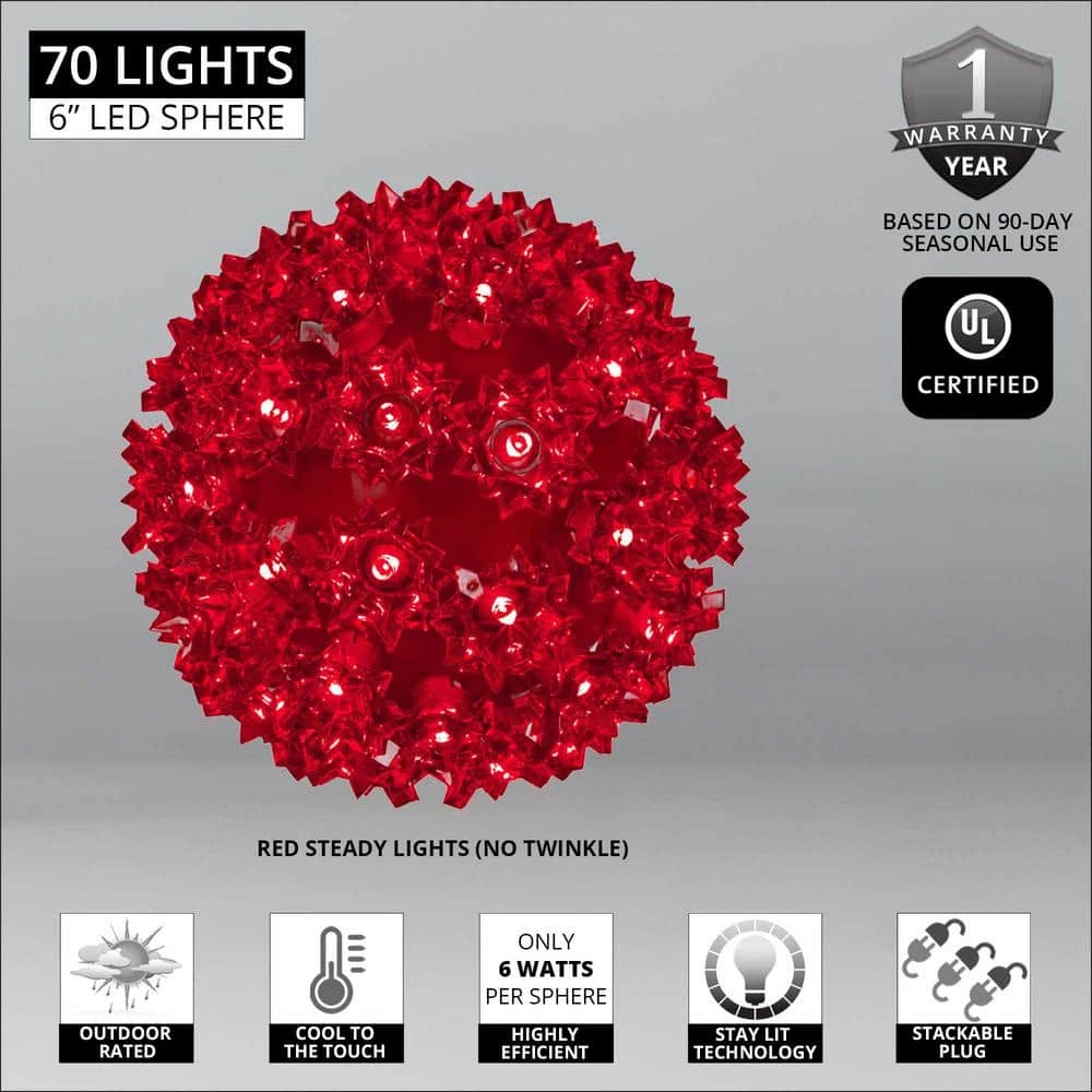 There’s no easier way to brighten your holidays, parties, weddings and outdoor landscapes than with these LED starlight spheres from Wintergreen Lighting. Just hang them, plug them in and you have instant, brilliant orbs of light. Each sphere is embedded with 5 mm LED 70 mini lights. Each light is encased in a plastic floral-shaped housing that enhances the light and helps keeps bulbs protected during installation and display. The 6 ft. lead cord is ideal for hanging. Plus, LED bulbs make these spheres energy efficient and built to last. Mix colors for a fun, festive display that’s uniquely you.