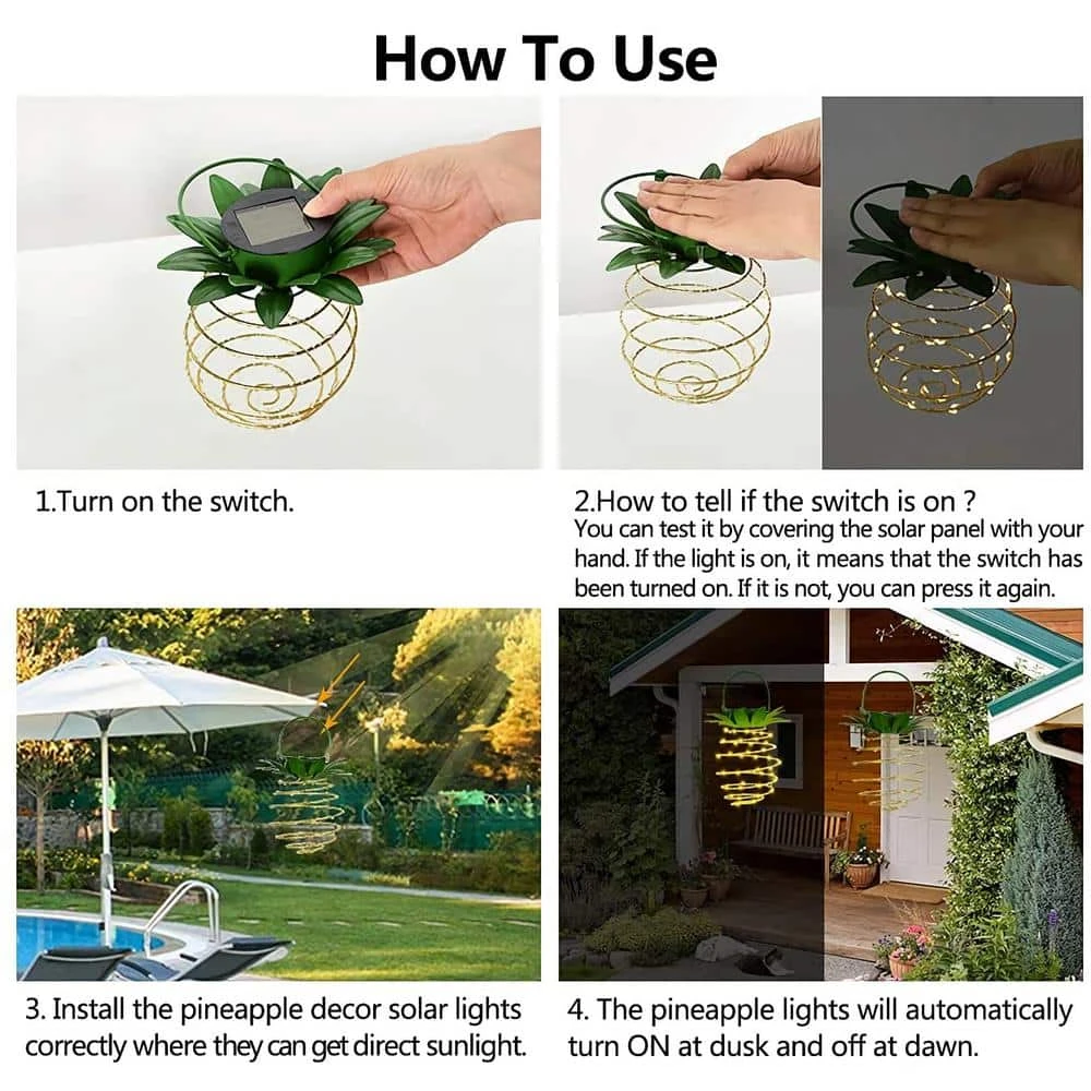 SOWAZ, a gorgeous set of solar pineapple hanging lights illuminate and make your home feel beautiful and more welcoming. These are great hanging lights and illuminating your garden. They are made of durable and waterproof material, high quality solar panel. Portable and perfect for outdoor use for hanging on trees, vines, porch, etc.