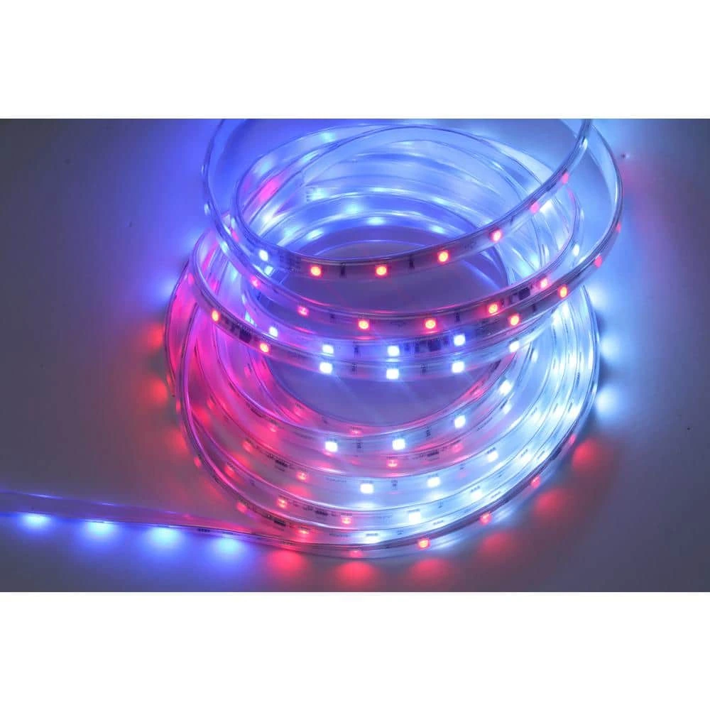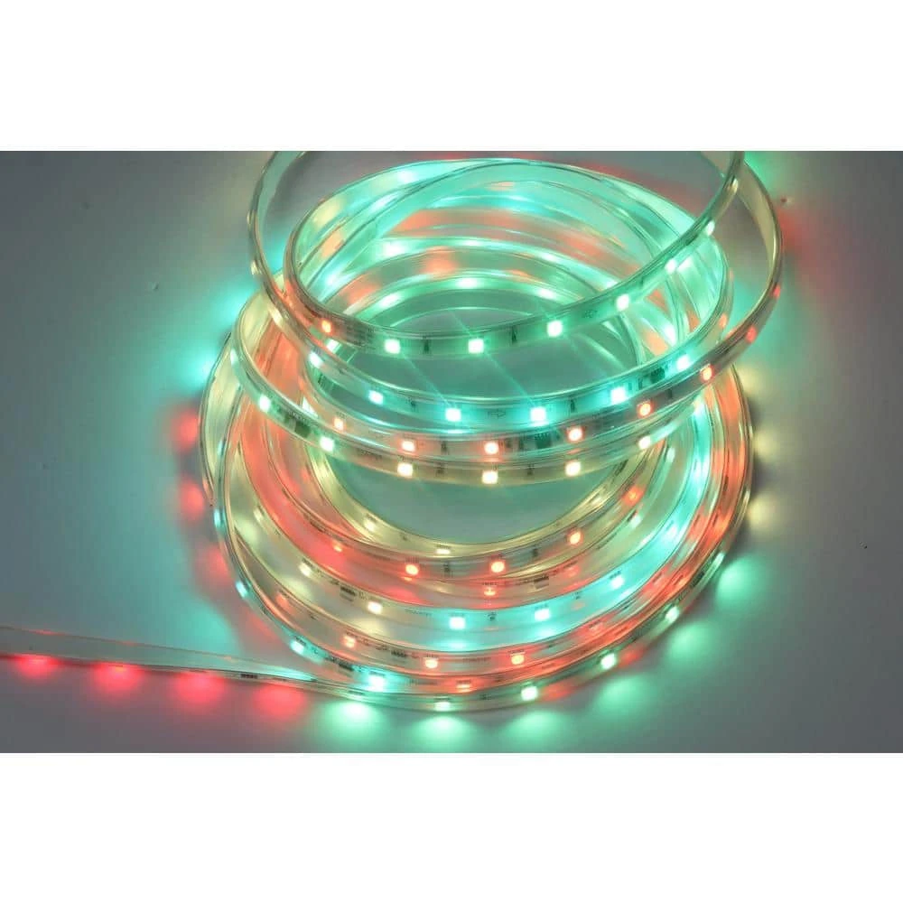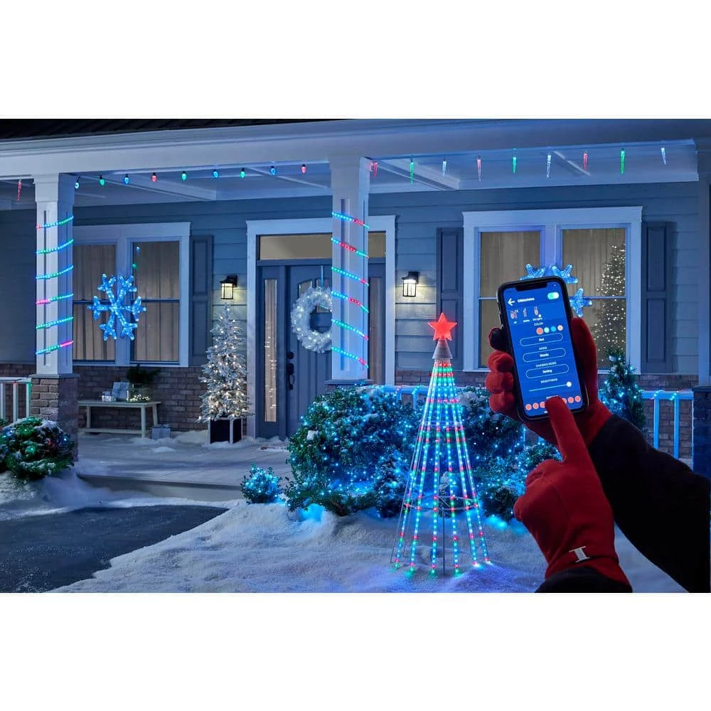 Ideal for windows, fences or other structures is this Show Home App 216-Light Rope. It features red, green and blue LED lights that sparkle and change colors. The rope stretches 10 ft. and can be connected to a maximum of 2 more sets to fill your holiday season with joy. Easily control the lights wirelessly from an app on your smartphone.