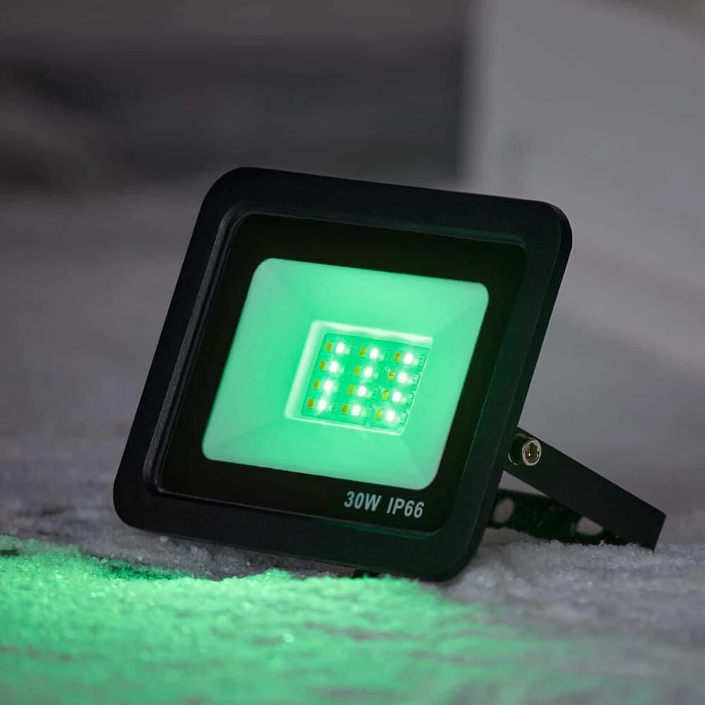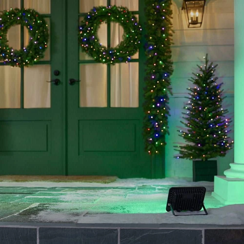 - 30-Watt multi-colored LED floodlight is the perfect holiday accessory