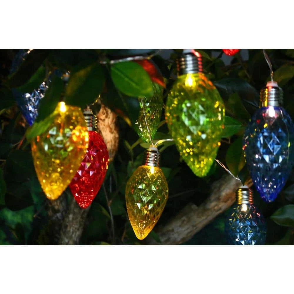 - Featuring red, blue, yellow, green faceted string Christmas bulbs with transparent lead wires