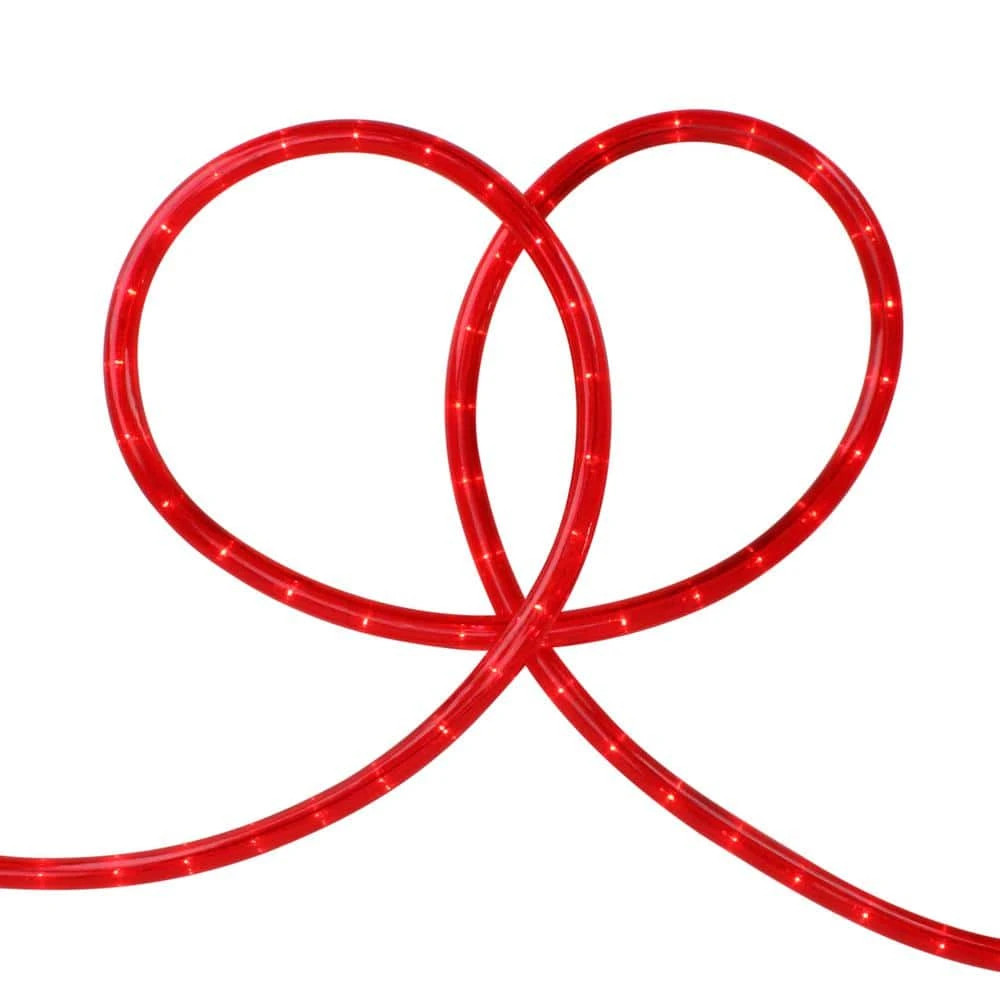 Rope lights are the perfect choice for decorating your backyard patio or garden for the upcoming warm weather. The flexible tube allows you to wrap the lights around trees decks or patios. These bright lights can also be used to illuminate your pathway a bookcase or cabinet in a fun way. The water-resistant feature allows you to place these lights around your pool and not have to worry about the splash zone. The possibilities are endless with these rope lights. Product Features: Tube color: red. Bulb color: clear. Spacing between each bulb: 1 in. Lighted length: 18 ft. Approximate thickness: 0.5 in. Dia. 11 in. white lead cord. Additional Product Features: Super bright bulbs. Water resistant. End connectors with the same opening of 0.5 in. allow you to connect multiple sets together (not to exceed 210-Watt). UL certified and approved for indoor or outdoor use. Flexible and easy to install. Includes mounting clips zip-ties and screws.