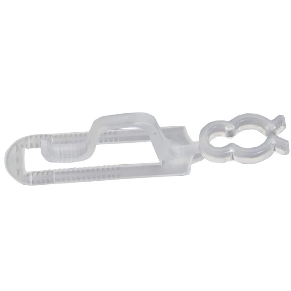 Make decorating a breeze instead of a chore while leaving time for you to enjoy all the holiday fun. Discreetly hang your holiday decor with these clear gutter and shingle clips. Light strings can attach to the clip through wire guides to securely hold lights without forcing or twisting. Features: Plastic gutter and shingle clip. Works with most C7 C9 mini icicle curtain and LED light sets. Can also be used for garland or other decorations. Snaps on gutters or slides under shingles. Recommended for indoor or outdoor use. Made of weatherproof and reusable material. Not intended for permanent installation; For seasonal use only. Hooks are designed to fit all standard gutters and shingles and work on most roofs. Dimensions: 3.5 in. H x 0.75 in. W x 1 in. D. Material(s): plastic. Note: Set includes 60 clips.