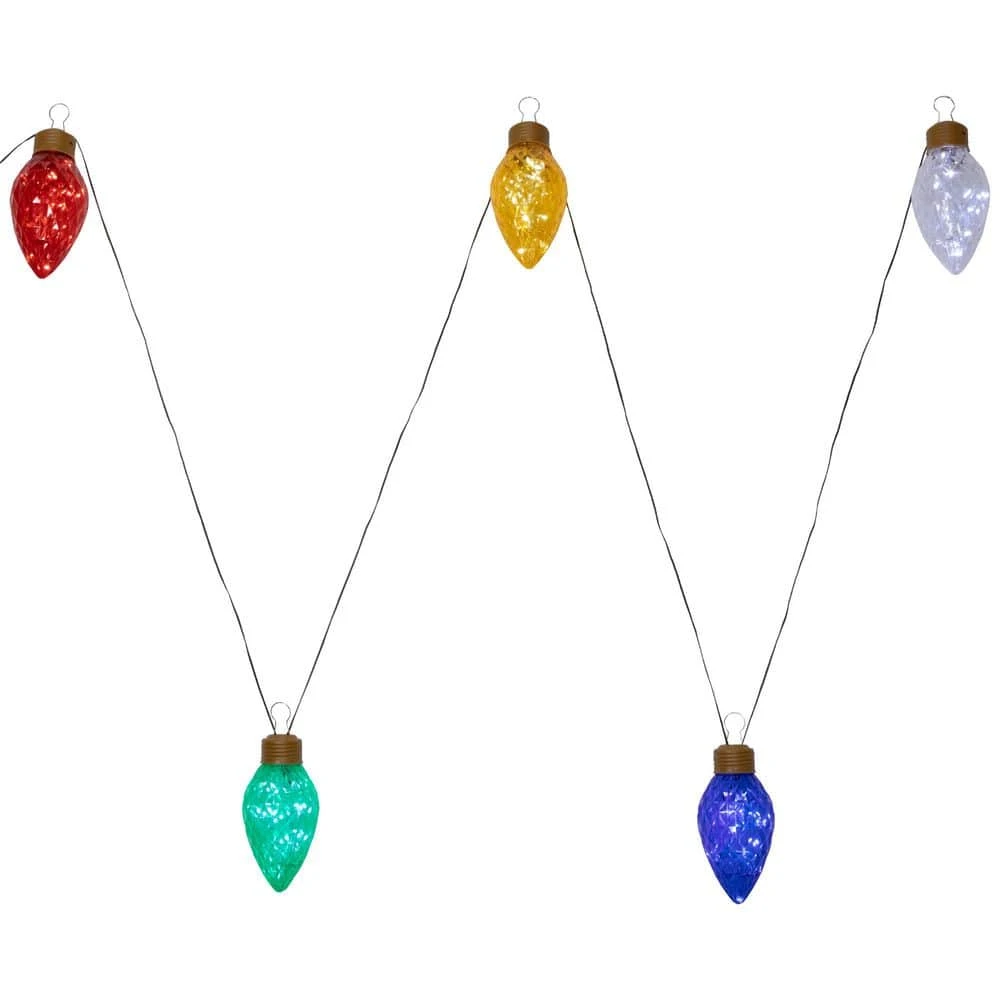 Light up your Christmas with these festive jumbo C9 style Christmas lights. These retro looking lights boast the nostalgia of the traditional C9 design with the energy-efficiency and long-lasting benefits of LED technology. Each bulb cover is filled with a 10 count clear light set. Perfect for making a bright bold holiday statement. Product Features: Color: clear bulbs / black wire. Bulb covers: blue red yellow green clear. Number of bulbs on string: 10 lights in each bulb cover for a total of 50 lights. Bulb size: mini wide angle. Bulb type: LED. Spacing between each bulb cover: 36