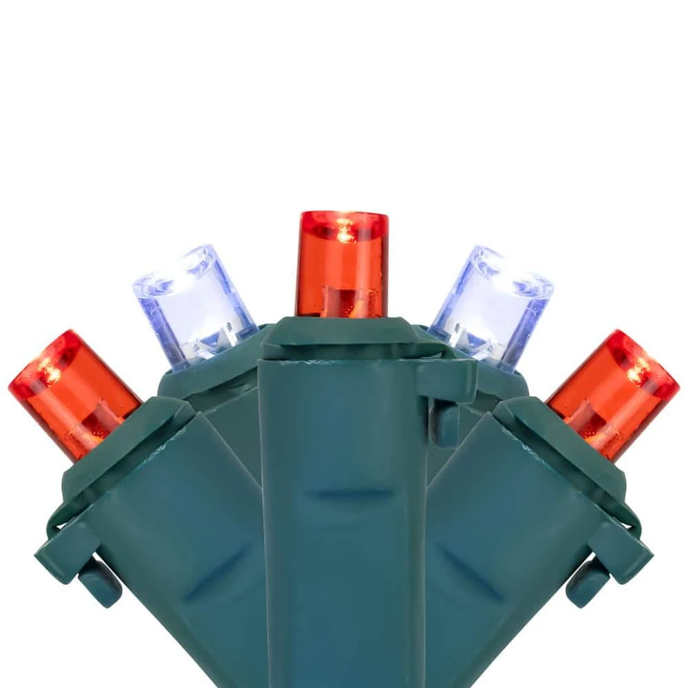 Add some twinkle to your holiday decor with these red and white string lights. Mounted on a green wire, 50 LED bulbs are spaced 4 in. apart. Durable, non-glass bulbs are cool to the touch.
