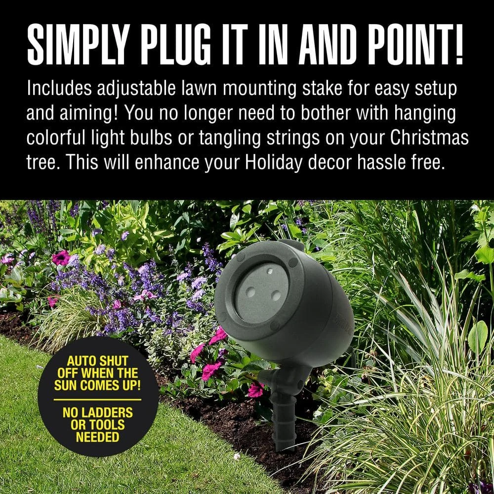 The StarTastic Outdoor Laser Projector is an easy way to light up your home and garden for Christmas. This is an absolute convenient Christmas solution for all your outdoor holiday decorations. This will enhance your Christmas decor hassle free. The Laser Projector is very easy to install and Projection coverage is over 4000 sq. ft. It has the ability to reach areas which general decorative lights cannot. This magnificent combination will create a magical sparkling effect on your trees and bushes. The StarTastic Outdoor Laser Projector Uses laser holographic technology found in theme parks to project breathtaking stars onto any surface, Weather resistant to withstand snow, rain and intense sun. The Laser Projector does not include a remote, timer and shutoff, so please plug the power and unplug the power manually. for long-term usage, we advise you to run it for less than 8-hours at a time and then rest for 30-minutes. Besides for what was just mentioned above the laser projector in general is safe and environment-friendly.