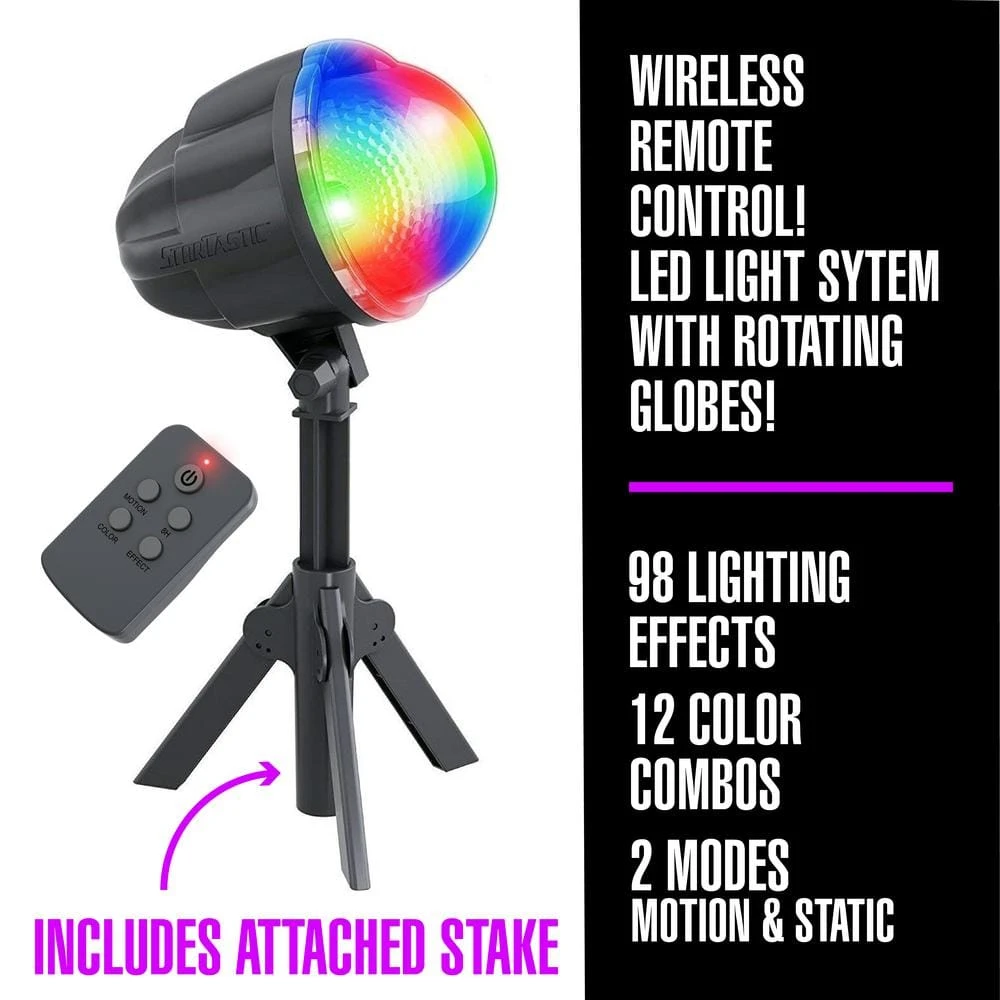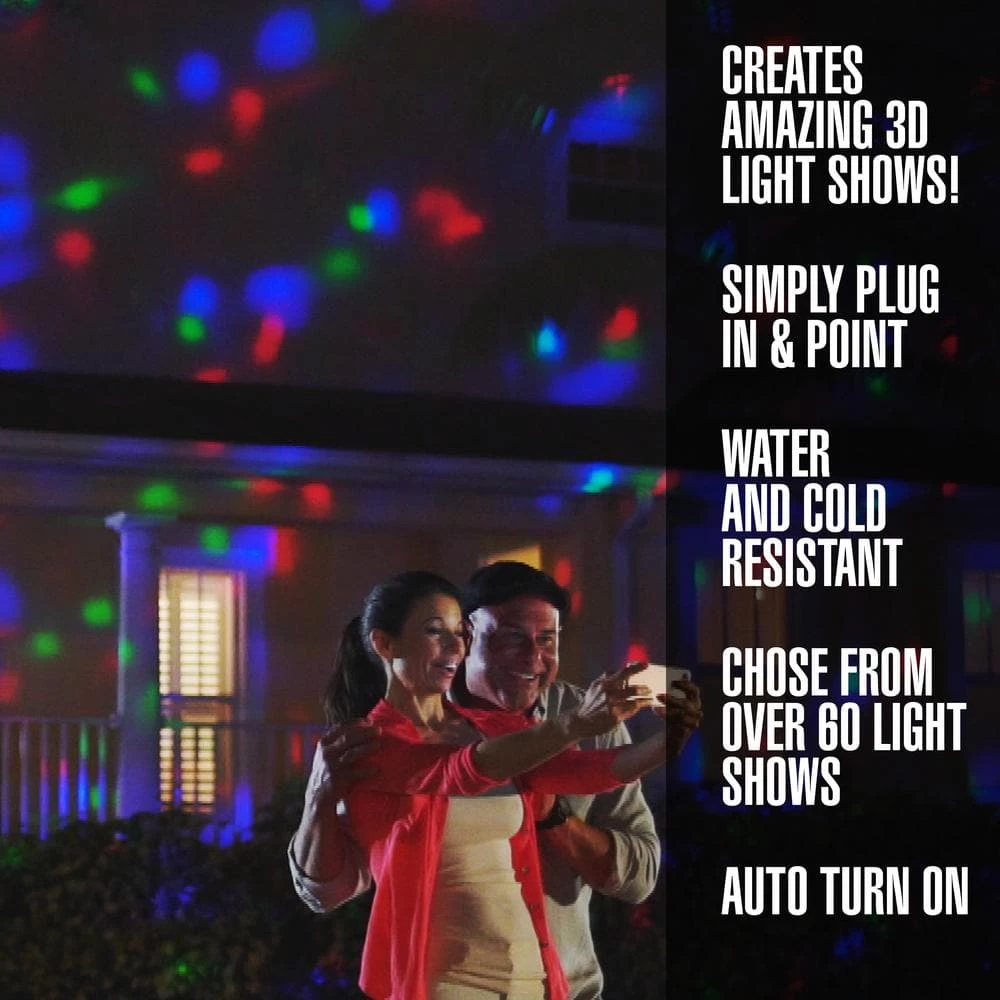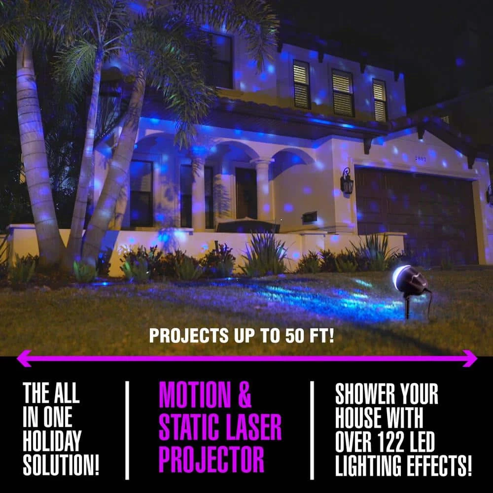 Startatsic Max As Seen on TV is the best and cost effective Holiday and event lighting solution. with over 122 lighting effects, your home or party is sure to stand out from the rest. It’s design makes it extremely versatile for all- around usage. No installation means you can save time and stress while decorating your home and enjoy more time with your family. It’s wire-less remote allows you to change your outside light combination from indoors. The Startatsic Max As Seen on TV projects light up to 50 ft. away and is suitable for both indoor and outdoor usage.