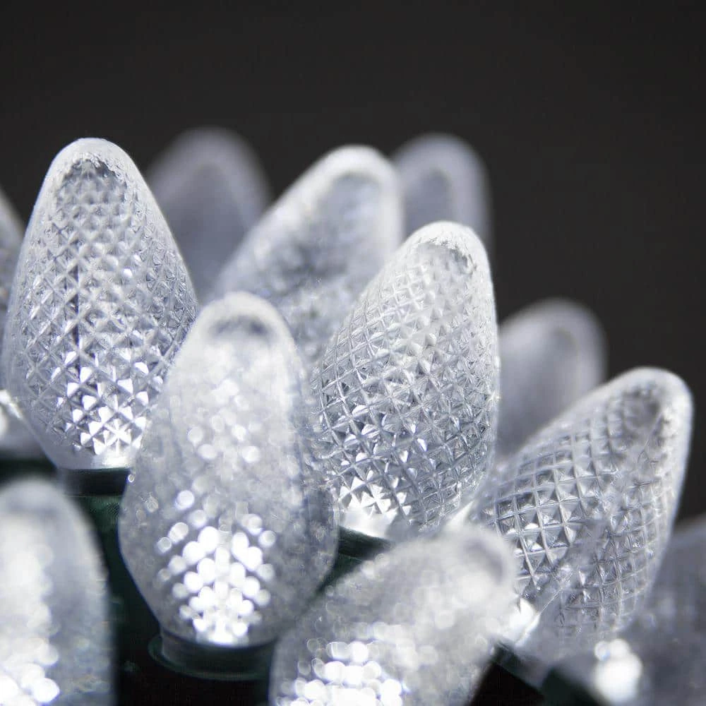 The SuperBright C7 string light sets from Wintergreen Lighting are the perfect solution when you want durable, easy-to-install and economical C7 Christmas lights. They feature 25-lights to a set, spaced 8 in. apart, with bulbs permanently installed. All you have to do is take them out and string them up. Because they are so energy efficient, you can connect dozens of these light sets together end to end. And the bulbs are rated to an average life span up to 100,000-hours. The acrylic bulbs are shatter resistant and the patented 1-piece construction seals out moisture to prevent corrosion. C7 bulbs are smaller than C9s, perfect for a wide variety of holiday lighting and decorating uses, inside and outside. Use them to light smaller outdoor trees for Christmas or to outline rooflines, fence lines and other structures. Or use them indoors to light mid- to larger-size Christmas trees or along mantels, railings and more. Fun, versatile, bright and colorful, these energy efficient, shatter resistant C7 string lights are ready to go, anytime.