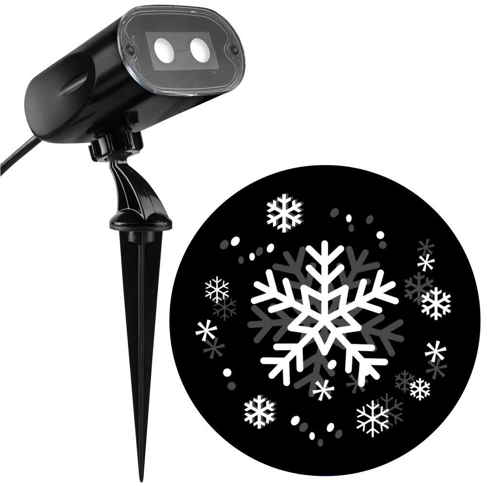 Quickly and easily add a holiday touch to your home decor with this holiday projector. Each projector features a classic white snowflake animation and a strobe-like effect. Perfect for interior or exterior walls and living spaces.